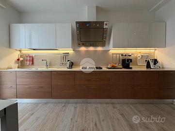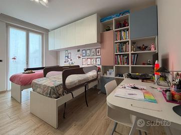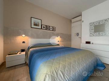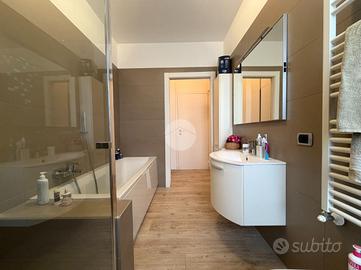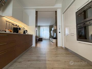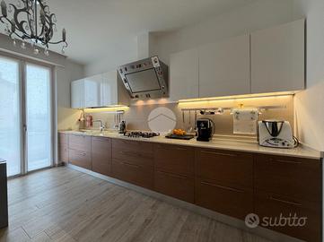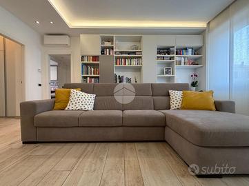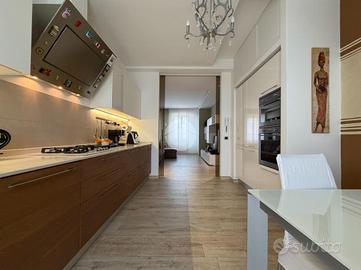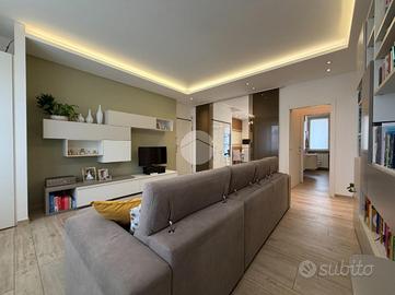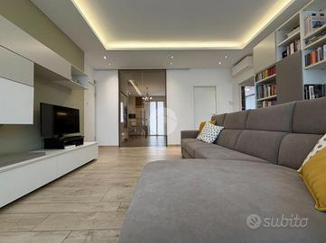 Proponiamo in vendita splendido appartamento di tre locali, recentemente ristrutturato e mantenuto in condizioni impeccabili grazie alla cura dei proprietari. L'ingresso si apre su un comodo e luminoso soggiorno, collegato a una cucina abitabile di ampie dimensioni, separata da una doppia porta in vetro fumé che divide elegantemente gli ambienti mantenendo al tempo stesso continuità e luminosità. La zona notte è composta da due camere matrimoniali e doppi servizi entrambi finestrati: uno dotato di doccia e l'altro con vasca e doccia. È presente inoltre un pratico antibagno sfruttato con armadiatura, ideale come spazio ripostiglio. Dalla cucina e da una delle camere si accede a un comodo balcone, mentre dalla camera matrimoniale si accede anche a un ulteriore balcone privato. L'appartamento si presenta in ottime condizioni, grazie a una recente ristrutturazione interna e a finiture moderne come pavimentazione in grès porcellanato effetto parquet, porte interne in legno sbiancato extra capitolato, infissi in PVC con doppio vetro, zanzariere e inferriate, tapparelle motorizzate in alluminio su tutte le finestre, impianto di antifurto e aria condizionata con pompa di calore. Gli alti soffitti sono valorizzati da eleganti abbassamenti in cartongesso che, oltre a dare carattere agli ambienti, permettono una gestione personalizzata dell'illuminazione e creano una moderna veletta per il binario delle tende. I bagni sono rifiniti con materiali di qualità e dotati di box doccia in cristallo da 10 mm marca Vismara. La casa è stata progettata in modo funzionale e razionale, così da sfruttare al meglio ogni spazio, e si presenta tenuta in modo impeccabile. Completano la proprietà una cantina, oltre alla quota di comproprietà con i restanti condomini del fabbricato sia di ampi locali comuni posti al piano sottotetto sia al piano seminterrato