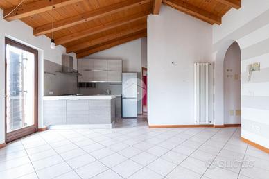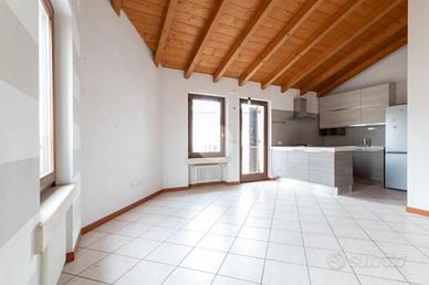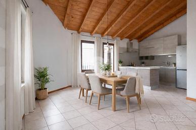 BUSSOLENGO - grazioso appartamento con sfogo esterno. UBICAZIONE - nel cuore di Bussolengo, in posizione centralissima e comoda a tutti i principali servizi, raggiungibili comodamente a piedi. DESCRIZIONE - inserito in un piccolo e tranquillo contesto di sole tre unità abitative, l'appartamento si trova al secondo ed ultimo piano, senza ascensore, garantendo privacy e tranquillità. L'ingresso si apre su una spaziosa e luminosa zona giorno con angolo cottura, valorizzata da travi a vista che donano calore e carattere all'ambiente, con accesso diretto allo sfogo esterno. La zona notte è composta da una camera matrimoniale, una camera singola e un bagno finestrato con doccia. Completa la proprietà una comoda cantina al piano interrato. Soluzione ideale per giovani famiglie o per chi cerca un'abitazione accogliente, curata nei dettagli e in posizione strategica. CONTATTI - per info e visite Siamo presenti alle pagine Instagram e Facebook Tecnorete Bussolengo.