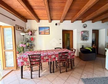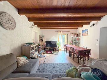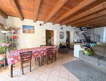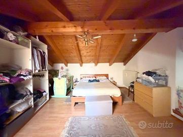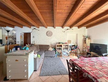 Appartamento situato in centro paese, in posizione strategica consente di raggiungere facilmente i principali servizi e le vie di comunicazione. Il trilocale è situato al secondo piano di una palazzina composta da soli tre alloggi, caratterizzato da ambienti luminosi . L'appartamento si sviluppa su due livelli. Al primo livello l'ingresso si apre su un'ampia zona giorno open space con travi a vista e doppia esposizione, che garantisce luce naturale durante tutto l'arco della giornata. Sullo stesso piano si trovano una camera da letto di generose dimensioni, un antibagno con predisposizione per la lavatrice e un bagno finestrato dotato di box doccia. Piano superiore Una seconda, ampia camera da letto mansardata, ideale come matrimoniale, studio o spazio multifunzionale. Gli infissi sono in PVC con doppio vetro, mentre il riscaldamento è autonomo e gestito da caldaia a metano. E' presente una cantina. Con possibilita' di Box auto a 5.000,00 euro .