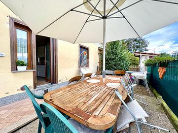 L'immobile, sito al piano terra e sviluppato su un unico livello abitativo, presenta l'ingresso sul luminoso soggiorno con cucina a vista da cui si ha accesso allo sfogo esterno, parzialmente piastrellato, ideale per momenti di relax all'aperto. Tramite disimpegno di accede alla zona notte composta da due ampie camere, un bagno finestrato dotato di box doccia e un ripostiglio.
