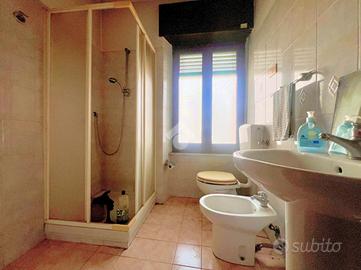 L'appartamento è composto da cucina, bagno finestrato dotato di doccia, due camere da letto e un locale attualmente adibito a magazzino. Al piano terreno è presente un ampio box auto doppio, comodo per due vetture e per ulteriore spazio di deposito. Completa la proprietà un sottotetto grezzo sfruttabile, ideale per essere valorizzato e adattato alle proprie esigenze.