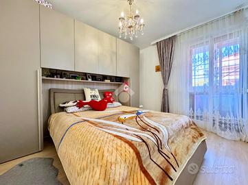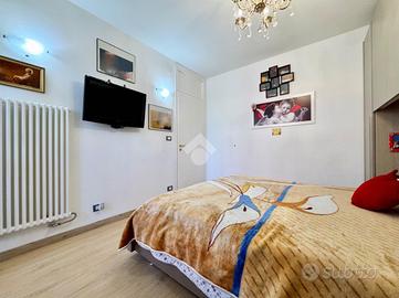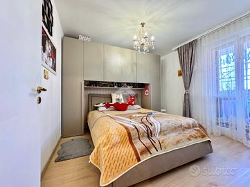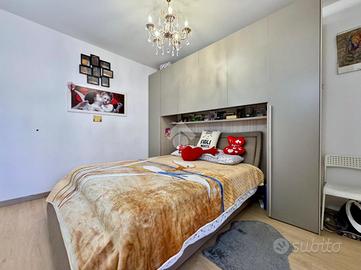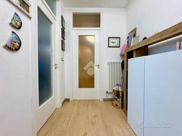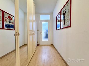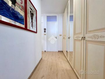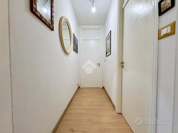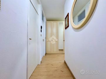 Il corridoio prosegue poi intersecandosi a forma di "elle"; qui trovano spazio gli accessi per il grande bagno finestrato e le due camere da letto ampie e luminose.