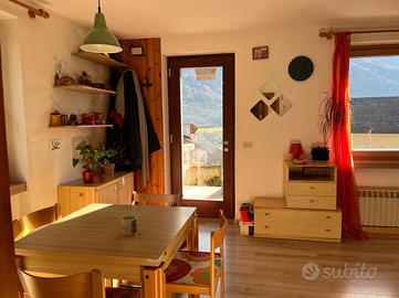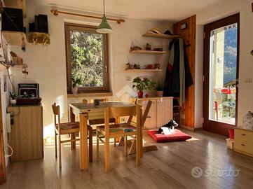 CADERZONE TERME - In una posizione tranquilla e rialzata, proponiamo in vendita un accogliente appartamento trilocale situato al piano rialzato di una piccola palazzina composta da sole quattro unità. Questo immobile è privo di spese condominiali. La sua elevata esposizione garantisce luminosità agli ambienti durante tutta la giornata e offre una splendida vista panoramica sul paese e sulla vallata. L'ingresso indipendente conduce direttamente alla zona giorno, dotata di stufa a legna. Il cucinotto è separato e finestrato. La zona notte comprende due camere da letto e un bagno, affiancato da un pratico ripostiglio. All'esterno si trova un ampio terrazzo privato esposto al sole tutto il giorno. Sono inclusi un giardino in comproprietà, un comodo posto auto coperto e una spaziosa cantina. Caderzone Terme è rinomata non solo per le sue acque termali dalle proprietà curative ma anche per il suo affascinante centro storico ricco di stradine pittoresche, case tradizionali con balconi fioriti e suggestive piazze in pietra che raccontano storie antiche. La comunità locale vive intensamente le proprie tradizioni attraverso eventi culturali e feste popolari visibili negli edifici storici circostanti. Immerso nell'incanto della Val Rendena e vicino alla cultura delle malghe rappresentate dal Museo della Malga, questo appartamento rappresenta la scelta ideale sia come residenza principale che come rifugio vacanziero.