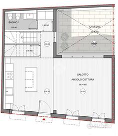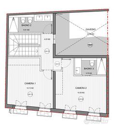 Il Trilocale può essere realizzato su due livelli con al piano terra il soggiorno con l'angolo cottura e il bagno mentre al secondo piano le due camere ed il bagno.