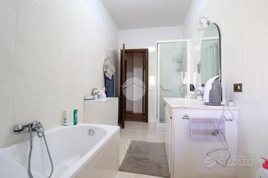 PIRRI: Nel Quartiere "Santa Maria Chiara "e precisamente nella Via Vincenzo Cuoco, ben collegata dall'asse mediano di scorrimento e centro di numerose attività commerciali, negozi, scuole, fermate linee pullman Ctm, proponiamo in esclusiva Trilocale al piano rialzato in piccolo condominio. L'appartamento consta di 117 mq e grazie alla sua doppia esposizione solare est/ovest, risulta molto luminosa. Entrando dal portoncino d'ingresso ci accoglie un ampio salone di ben 35 mq in parquet con due ambienti contigui ben studiati nella sua linea classica d'arredo. Una doppia porta ci porta alla cucina abitabile con finestra nel piano lavoro e accesso alla veranda sanata che si affaccia al cortile privato di 30 mq. Dal disimpegno della zona notte troviamo il bagno principale finestrato che è stato ristrutturato nei primi anni 2000, ben congeniato di box doccia e vasca. Le due camere da letto sono entrambe matrimoniali, di cui una ha un recente bagno in camera finestrato, completo di tutti gli accessori e box doccia. Completa la proprietà il ripostiglio posto all'interno della casa, molto utile come dispensa. Pompe di calore recenti e presenti su ogni ambiente inverter caldo/freddo. Zanzariere. Caldaia a gas ad uso fornelli e acqua calda sanitaria. Mutuabile.