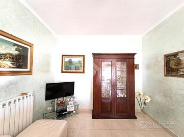 A Calcata Nuova, paese conosciuto per la vicinanza all'antico borgo di Calcata Vecchia, uno dei centri più affascinanti e particolari della provincia di Viterbo, proponiamo appartamento al centro del paese. Ci troviamo precisamente in Via Don Aurelio Moriggi, a ridosso dei servizi e delle principali attività che il paese offre. Questa soluzione è situata al piano secondo di una palazzina di tre livelli composta da sole tre unità abitative, realizzata nel 1970 circa. L'abitazione di una metratura complessiva di circa 120 mq è così suddivisa:Entrando troviamo un ampio e luminoso disimpegno che separa la zona giorno dalla zona notte, l'ambiente principale della casa è il salone con cucina a vista, camino e uscita diretta sul balcone, troviamo poi una stanza studio, una camera da letto matrimoniale con all'interno un bagno, altra camera matrimoniale con uscita su un ulteriore balcone e il bagno principale. L'immobile presenta internamente caratteristiche e rifiniture dell'epoca di realizzo, in una recente ristrutturazione l'attuale proprietà ha rimodernizzato infissi, finestre, zanzariere e tende da sole esterne, nel complesso in ottimo stato di conservazione. Il punto di forza di questa proprietà è rappresentato dalla luminosità e dalle dimensioni ampie e confortevoli di tutti gli ambienti. Soluzione ideale per chi è alla ricerca di un contesto all'insegna della tranquillità, ma a 40 Km da Roma.