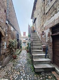 Nel suggestivo Borgo Medievale di Calcata proponiamo in vendita un suggestivo appartamento con entrata indipendente sito ai piani primo e secondo in discreto stato di manutenzione. L'immobile sviluppa 110 mq di superficie ed è composto al piano superiore da un ampio soggiorno con angolo cottura e grande camino antico ed un bagno, a fianco troviamo un'ulteriore sala caratterizzata da un soppalco con sottostante libreria. Al piano sottostante trova posto una spaziosa camera da letto con il secondo bagno. L'impianto di riscaldamento è autonomo con caldaia a gas e produzione di acqua calda:caratteristici i radiatori in ghisa e le tubazioni in ottone a vista. Anche i bagni presentano rifiniture che richiamano stili del passato. Le pavimentazioni sono quasi tutte in cotto. Affacci panoramici in un'atmosfera d'altri tempi. Ottimo ad uso investimento per attività ricettiva di B&B in uno dei borghi più belli d'Italia.