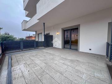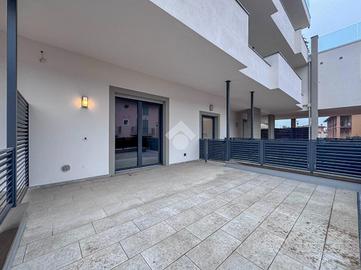 Internamente: soggiorno con cucina ampio e luminoso con affaccio sul portico e patio; zona notte con disimpegno, n.2 camere da letto, una matrimoniale e una doppia, n.2 bagni completi di sanitari principali e doccia.