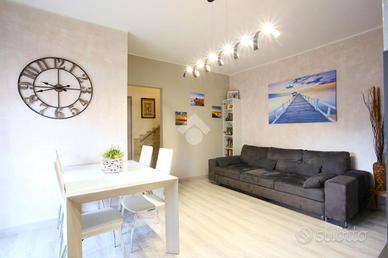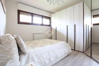 CALDERARA DI RENO: A due passi dal centro di Calderara di Reno proponiamo in vendita un trilocale di 94 mq. L'immobile completamente ristrutturato nel 2018, si trova ad un secondo piano con ascensore, vicino alla fermata del bus. L'abitazione si suddivide su due livelli: all'ingresso (piano alto) si trova la zona notte dove un piccolo disimpegno divide un bagno finestrato e con doccia (ricostruito nel 2021) dalla camera matrimoniale ampia e con una finestra che si estende per quasi tutta la parete della stanza così da garantire un'ottima illuminazione ma anche sicurezza grazie alle inferiate. Scendendo le scale si incontra un piccolo ma comodo ripostiglio, la seconda cameretta con esposizione ad est, per poi accedere alla alla zona giorno composta uno spazioso soggiorno con cucinotto e un balcone abitabile con esposizione a est. L'appartamento si presenta completamente restaurato in chiave moderna con pavimentazione laminata (del 2022) in color legno chiaro che si accosta perfettamente a tutte le altre tonalità dell'arredamento. Gli infissi in doppio vetro in legno trattengono la temperatura generata una caldaia a condensazione e diffusa da termosifoni in ghisa e 3 Trialsplit caldo/freddo di ultima generazione. Completano la proprietà una cantina di pertinenza, un grande giardino condominiale e possibilità di garage (€15.000).