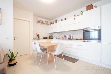 Caldogno, siamo lieti di proporre un appartamento di recente costruzione, ideale per chi cerca una soluzione moderna e funzionale. L'immobile, situato in un contesto residenziale tranquillo, si estende su una superficie di 75 mq commerciali e offre spazi ben distribuiti. Composto da tre locali, l'appartamento include una zona giorno luminosa con cucina a vista, due camere da letto e due bagni. Le finiture contemporanee garantiscono comfort, praticità e più in generale una buona qualità di vita. La costruzione, completata nel 2022, rispetta le normative energetiche attuali, assicurando efficienza e risparmio. Una soluzione abitativa che coniuga modernità e comodità, perfetta per una giovane coppia che desidera vivere in un ambiente accogliente. Viene venduto completamente arredato.