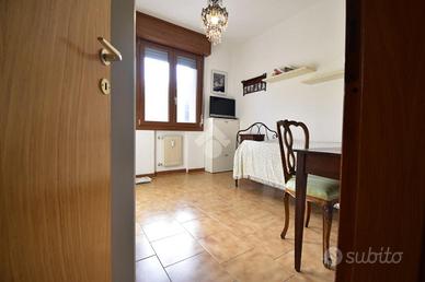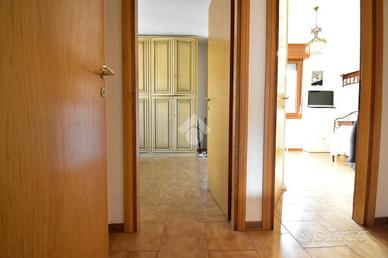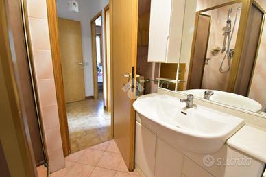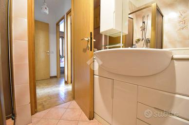 Tramite un disimpegno accediamo alla zona notte, dove si collocano le due camere da letto di cui una matrimoniale, e il bagno cieco fornito di piatto doccia.