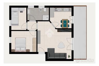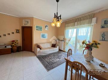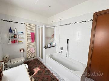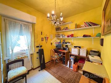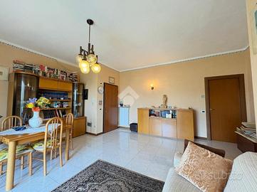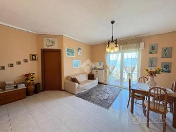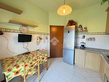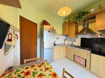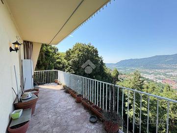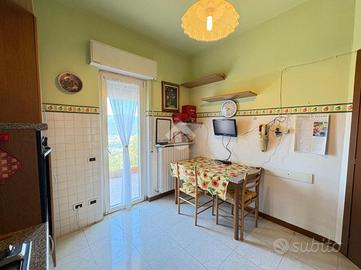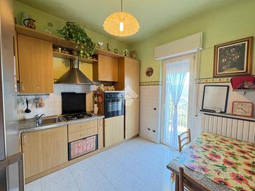 L'appartamento si compone di: Luminoso soggiorno con ampia porta-finestra scorrevole che affaccia su un terrazzo vivibile di 18 mq, perfetto per rilassarsi ammirando il paesaggio circostante, cucina abitabile, due camere da letto, bagno finestrato con vasca e doccia. Completano la proprietà: Box auto, ampio ripostiglio di 53 mq, giardino privato di ben 488 mq (non collegato direttamente all'abitazione), ideale per pranzi all'aperto, momenti di relax e per chi ama coltivare.L'immobile, ristrutturato negli anni '90, si presenta in buono stato ed è dotato di: Infissi in PVC con doppio vetro, tapparelle (quella del soggiorno è elettrica).
