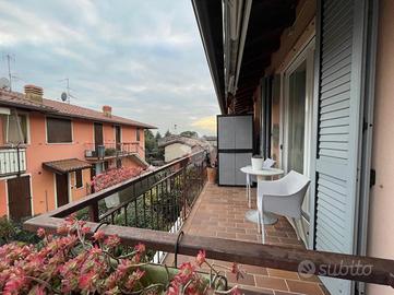 Calvagese della Riviera, appartamento di testa situato in un recente complesso residenziale con ingresso indipendente. Corte privata, soggiorno con cucina abitabile separata, due camere matrimoniali, un comodo servizio e due balconi ampi. L'appartamento è completamente arredato.