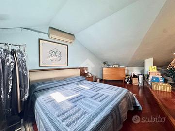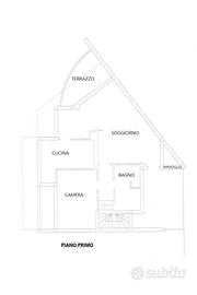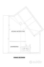 Dal disimpegno abbiamo accesso al piano secondo con scala in muratura, dove troviamo una zona bagno/lavanderia e circa 50 mq mansardati ad uso locale accessori/ guardaroba.