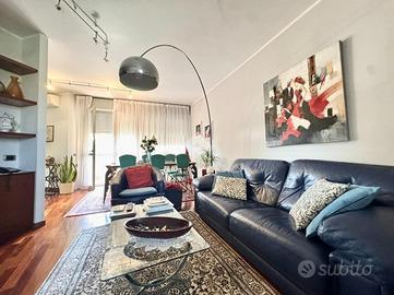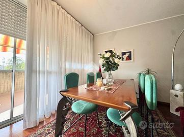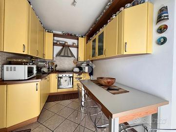 Soggiorno luminoso con accesso al terrazzo completo di tenda da sole automatica ed ideale come zona pranzo/cena all'esterno. Cucina abitabile comprensiva di arredamento, disimpegno, ampio bagno e camera da letto al piano con cabina armadio a vista.