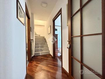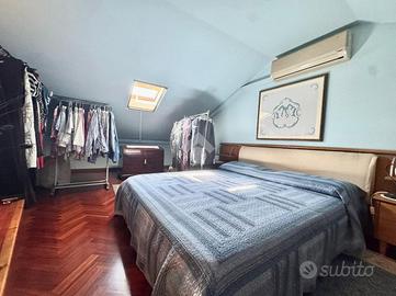 Dal disimpegno abbiamo accesso al piano secondo con scala in muratura, dove troviamo una zona bagno/lavanderia e circa 50 mq mansardati ad uso locale accessori/ guardaroba.
