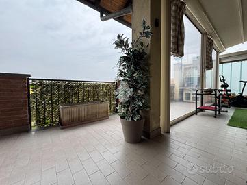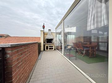 L'immobile vanta un ampio terrazzo vivibile con pergola bioclimatica nuova, perfetto per cene all'aperto e momenti di relax, oltre a due balconi che garantiscono luce naturale durante tutta la giornata.