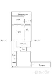 L'immobile è composto da due vani oltre cucinotto: la zona giorno presenta un soggiorno, un cucinotto separato e un ampio ripostiglio finestrato, facilmente utilizzabile come studio o angolo hobby.