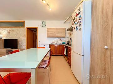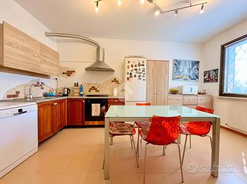 Attraversato il portoncino in legno, si accede all'ampia e luminosa zona giorno open space, caratterizzata da ambienti ben distribuiti e accoglienti. Sulla destra si sviluppa la cucina, funzionale e ben organizzata, mentre sulla sinistra si apre l'area soggiorno, ideale per la vita quotidiana e il tempo libero.