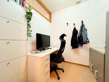 Un lungo disimpegno collega la zona giorno alle altre stanze della casa. Sulla destra si trovano due bagni: il primo dotato di doccia e angolo lavanderia, il secondo con una confortevole vasca. Sulla sinistra si accede a uno studio, perfetto anche come stanza per lo smart working o per gli hobby, e a una spaziosa camera singola. In fondo al corridoio si trova la camera matrimoniale, luminosa e silenziosa, ideale per il riposo.