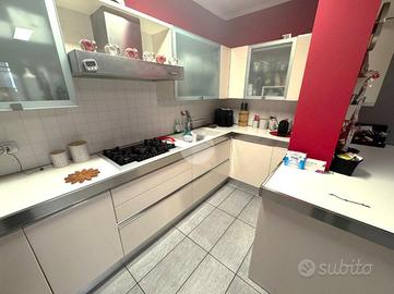 L'abitazione, di circa 100 mq, si sviluppa con una moderna zona giorno open space che unisce cucina e salotto, creando un ambiente accogliente e funzionale.