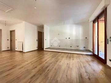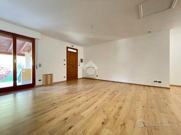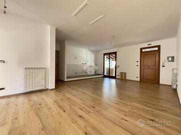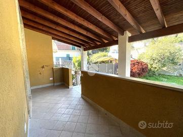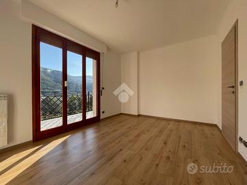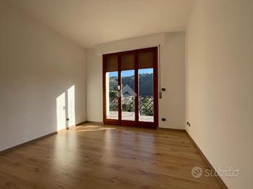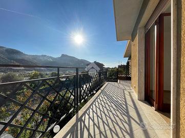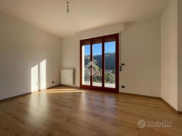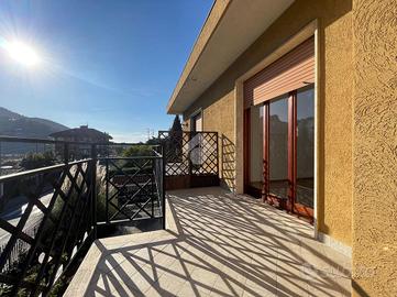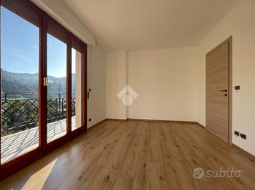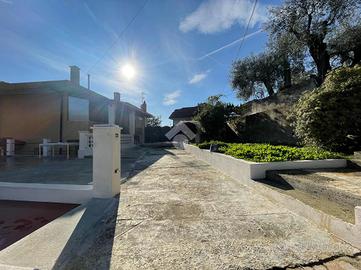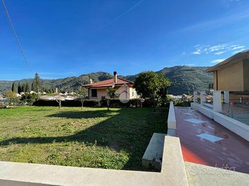 La proprietà è situata subito dopo il centro storico di Camporosso, a circa 800 metri dal paese e a 4km dall'Aurelia. L'appartamento, al primo ed ultimo piano, fa parte di una casa quadrifamiliare ma la proprietà ha un accesso totalmente indipendente già dalla strada, con un cancello ad uso esclusivo che conduce al box auto. Al piano superiore si trova l'appartamento, oggetto di una totale ristrutturazione, che è composto da un'ampia zona giorno open space, due camere da letto, un bagno principale ed uno di servizio. Gli spazi esterni non mancano: oltre a due terrazzi sui lati est ed ovest della casa, la proprietà include infatti un giardino privato di 1400 mq ca. Il riscaldamento è autonomo e non ci sono spese di gestione comuni con le altre unità.