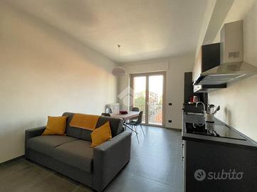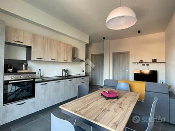 Via Aurelio Robino, in zona centrale, appartamento al secondo piano in contesto ristrutturato a nuovo. La palazzina, ristrutturata a nuovo nel 2024, offre una soluzione dagli ambienti moderni ed accoglienti. La proprietà è completa di mobilio, pronta per essere abitata senza ulteriori interventi. La presenza di due balconi garantisce un'eccellente luminosità naturale, creando un'atmosfera piacevole ed ariosa, e sono dotati di faretti per la luce notturna e tapparelle elettriche. Il soggiorno è living con cucina a vista, le camere da letto sono due ed il bagno è finestrato con antibagno. L'aria condizionata assicura comfort in ogni stagione. Completa la proprietà una cantina. L'appartamento è elegante e funzionale, a pochi passi dai principali servizi offerti dal comune di Canelli.