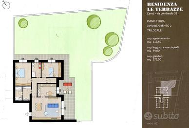 RESIDENZA LE TERRAZZE - 'Il lusso che meriti nello spazio che hai sempre immaginato' Cantù, precisamente nella frazione di Mirabello, prende forma un esclusivo intervento residenziale che darà vita a una palazzina elegante e signorile composta da 16 unità abitative. Il progetto architettonico è stato concepito per offrire ambienti generosi e armoniosi, le soluzioni al piano terra dispongono di portici e giardini privati, mentre gli appartamenti al primo piano al secondo e al terzo con attico sono valorizzati da grandi terrazzi panoramici, pensati per garantire privacy, comfort e una qualità abitativa superiore. Appartamento 02 - Piano Terra Ampio trilocale al piano terra composto da cucina abitabile luminosa, grande soggiorno, doppi servizi, camera matrimoniale spaziosa e molto luminosa e cameretta. Il vero valore aggiunto dell'abitazione è il giardino privato di 272,50 mq, ideale per vivere momenti di relax all'aria aperta, garantendo al tempo stesso privacy e comfort. La residenza sorge in una posizione strategica e comoda a tutti i principali servizi, coniugando al meglio riservatezza e praticità quotidiana. Particolare attenzione è riservata alla qualità costruttiva e al dettaglio: finiture di pregio, materiali selezionati e soluzioni tecnologiche d'avanguardia definiscono un'abitazione di alto profilo. L'edificio sarà caratterizzato da alta efficienza energetica, completamente privo di gas, e dotato di impianti di ultima generazione con riscaldamento a soffitto, per un comfort discreto ed elegante in ogni stagione. A completamento dell'offerta, è prevista la disponibilità di pertinenze acquistabili separatamente, tra cui: Box singolo a € 21.000 Box doppio in lunghezza a € 42.000 Box doppio in larghezza a € 45.000 Posto auto scoperto esterno a € 8.000 Posto auto scoperto interno a € 10.000 Prezzi Cantina a Partire da € 5.000 CONSEGNA PREVISTA 2028 I render presentati sono puramente illustrativi e non corrispondono a un appartamento specifico. Le