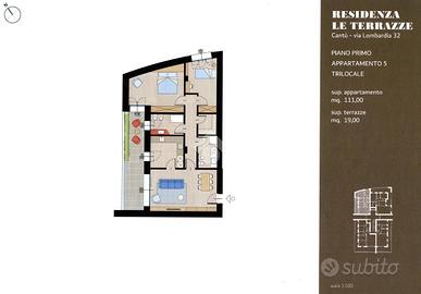 RESIDENZA LE TERRAZZE - 'Il lusso che meriti nello spazio che hai sempre immaginato' Cantù, precisamente nella frazione di Mirabello, prende forma un esclusivo intervento residenziale che darà vita a una palazzina elegante e signorile composta da 16 unità abitative. Il progetto architettonico è stato concepito per offrire ambienti generosi e armoniosi, le soluzioni al piano terra dispongono di portici e giardini privati, mentre gli appartamenti al primo piano al secondo e al terzo con attico sono valorizzati da grandi terrazzi panoramici, pensati per garantire privacy, comfort e una qualità abitativa superiore. Appartamento 05 - Piano Primo Ampio trilocale al piano primo composto da cucina abitabile luminosa, grande soggiorno, doppi servizi, camera matrimoniale spaziosa e molto luminosa e cameretta. Il vero valore aggiunto dell'abitazione è il terrazzo privato di 19 mq, ideale per vivere momenti di relax all'aria aperta, garantendo al tempo stesso privacy e comfort. La residenza sorge in una posizione strategica e comoda a tutti i principali servizi, coniugando al meglio riservatezza e praticità quotidiana. Particolare attenzione è riservata alla qualità costruttiva e al dettaglio: finiture di pregio, materiali selezionati e soluzioni tecnologiche d'avanguardia definiscono un'abitazione di alto profilo. L'edificio sarà caratterizzato da alta efficienza energetica, completamente privo di gas, e dotato di impianti di ultima generazione con riscaldamento a soffitto, per un comfort discreto ed elegante in ogni stagione. A completamento dell'offerta, è prevista la disponibilità di pertinenze acquistabili separatamente, tra cui: Box singolo a 21.000 Box doppio in lunghezza a 42.000 Box doppio in larghezza a 45.000 Posto auto scoperto esterno a 8.000 Posto auto scoperto interno a 10.000 Prezzi Cantina a Partire da 5.000 CONSEGNA PREVISTA 2028 I render presentati sono puramente illustrativi e non corrispondono a un appartamento specifico. Le immagini sono e