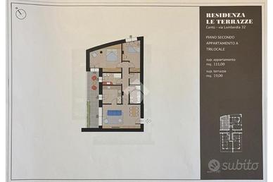 Ampio trilocale al piano secondo composto da cucina abitabile luminosa, grande soggiorno, doppi servizi, camera matrimoniale spaziosa e molto luminosa e cameretta.