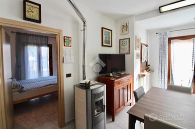 Gli spazi interni sono ben distribuiti: troviamo il soggiorno con cucina funzionale che si integra armoniosamente con la zona giorno, quest'ultima si affaccia su un giardino privato perfetto per momenti di relax.