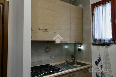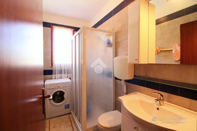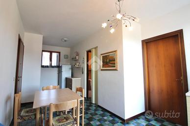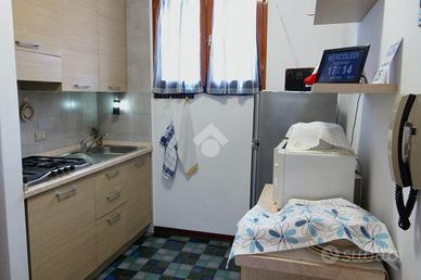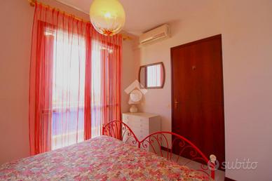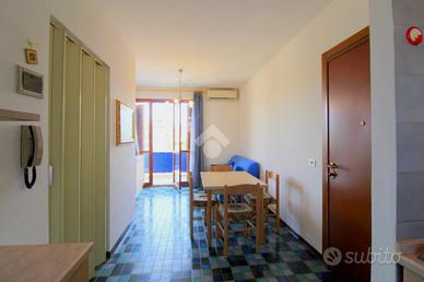 Nella tranquillità della zona di ponente a 30 metri dalla spiaggia troviamo un condominio fronte mare ristrutturato nel 2024. Per raggiungere le 15 unità immobiliari il condominio è dotato di quattro scale di accesso indipendenti con anche la comodità di un ascensore. Accedendo all'appartamento ci troviamo nel locale da pranzo - soggiorno completo di reparto cucina sulla sinistra, sulla destra la zona pranzo composta da tavolo e sedie in legno e, proseguendo, troviamo il divano letto matrimoniale e mobile tv. Dal luminoso soggiorno passiamo direttamente al terrazzo fronte-mare esposto a sud-est. Frontalmente all'ingresso troviamo un disimpegno dal quale si accede al bagno finestrato completo di cabina doccia, sanitari, lavatrice e alla camera da letto matrimoniale con accesso al terrazzo; completa la zona notte la seconda camera dotata di un posto letto e un comodo ripostiglio interno che funge anche da dispensa. L'appartamento è dotato di condizionatori con pompa di calore e posto auto parzialmente coperto di proprietà al piano terra. Soluzione ideale per chi cerca un ambiente da subito abitabile senza dover rinunciare ai confort di avere il mare a due passi ed emozionarsi ammirandolo ed ascoltandolo dal proprio terrazzo.