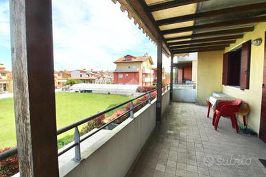 Località Ottava Presa, trilocale in vendita a soli 10 minuti dal centro storico di Caorle. In zona tranquilla e residenziale, proponiamo un appartamento al primo piano inserito in un edificio del 2006. L'immobile si apre su una luminosa zona giorno open space con cucina abitabile, perfettamente organizzata per vivere al meglio gli spazi. Dalla zona living si accede a un ampio terrazzo abitabile, caratterizzato da una piacevole vista aperta sul verde e sul contesto circostante. Dal soggiorno passiamo alla zona notte: composta da una camera padronale con accesso diretto al secondo terrazzo privato, da una confortevole camera doppia e un bagno finestrato con doccia. La soluzione è dotata di split con pompa di calore e riscaldamento autonomo a radiatori, garantendo comfort in tutte le stagioni e una gestione indipendente dei consumi. Completano la proprietà un box auto e un posto auto esterno, caratteristiche molto richieste nella zona. Un'abitazione che unisce comfort, tranquillità e piacevoli spazi esterni da vivere tutto l'anno, perfetta per chi cerca relax e qualità della vita a pochi minuti dal mare.