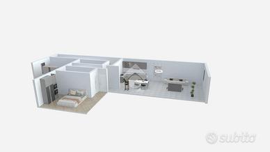 L'immobile si sviluppa tutto su un unico livello e appena entrati troviamo ampio soggiorno con angolo cottura, dopo di chè abbiamo bagno con lavanderia.