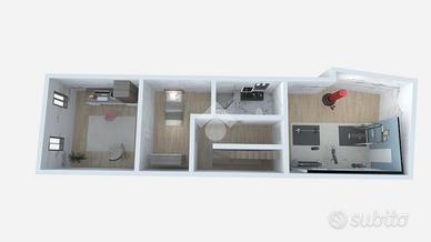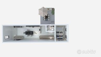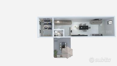 L'immobile dispone di ingresso indipendente, dal quale accediamo al luminoso soggiorno con angolo cottura con accesso diretto alla terrazza privata, ideale per pranzi o cene all'aperto.