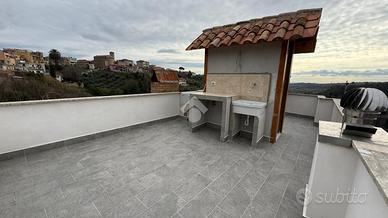 E poi, come in un finale da sogno, l'ultimo piano regala uno splendido terrazzo panoramico: da qui lo sguardo abbraccia tutta Capena, tra tetti, colline e cielo, un luogo ideale per cene sotto le stelle, momenti di relax o semplicemente per lasciarsi ispirare dal panorama.