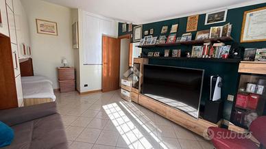 La porta finestra, apre il soggiorno verso l'esterno, regalando luce naturale e aria, e conduce al terrazzo vivibile, uno spazio intimo e panoramico, dove il tempo sembra rallentare: il luogo perfetto per rilassarsi, leggere, o semplicemente godersi la quiete e la vista libera.