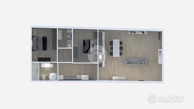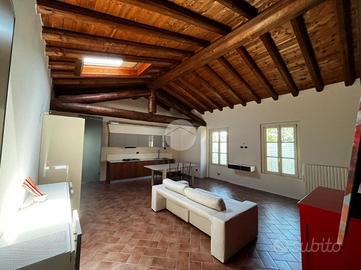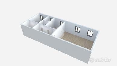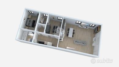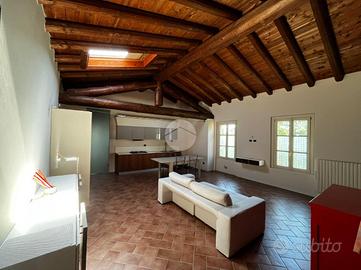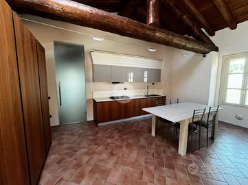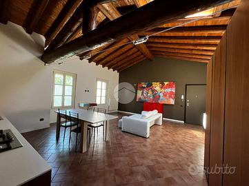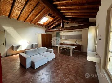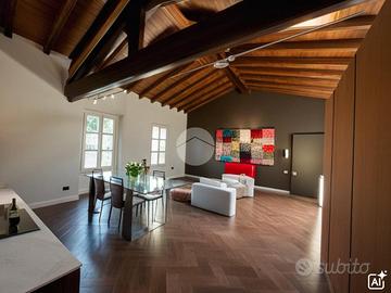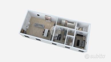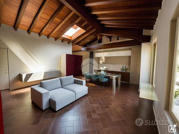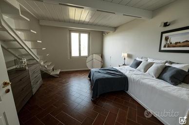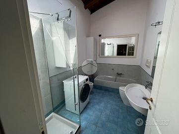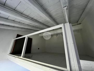 L'appartamento è composto da soggiorno con zona cottura ideale per momenti di convivialità, una camera matrimoniale e una camera soppalcata, perfetta per chi cerca un ambiente versatile. I due bagni, entrambi dotati di doccia, offrono comfort e praticità: uno è illuminato da una finestra, l'altro da un abbaino.