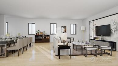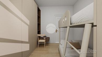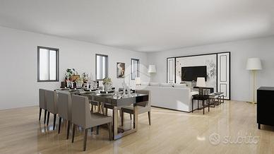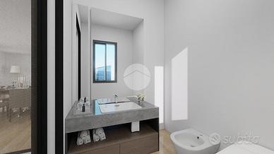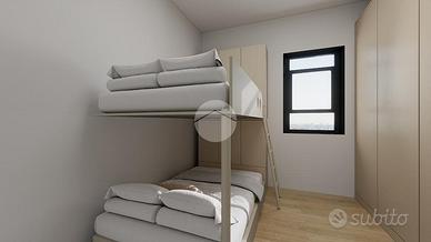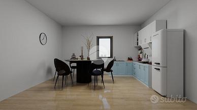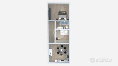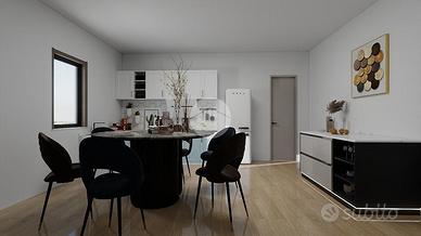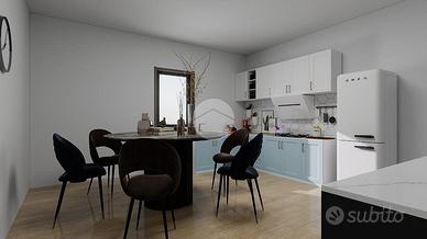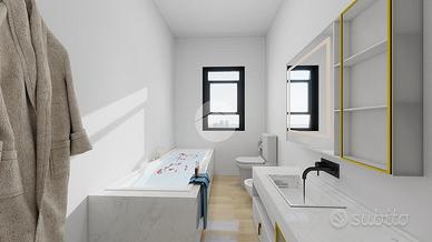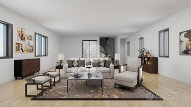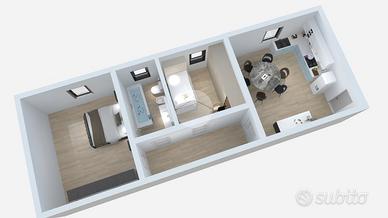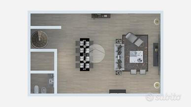 L'immobile si presta anche come trilocale indipendente a piano primo con il proprio studio o ufficio a piano terra sempre con accesso indipendente. I due piani sono collegati da scala interna rimovibile alla necessità.