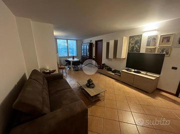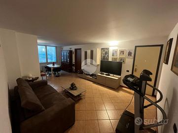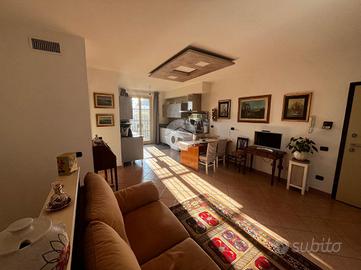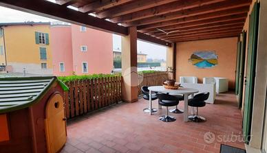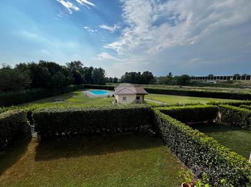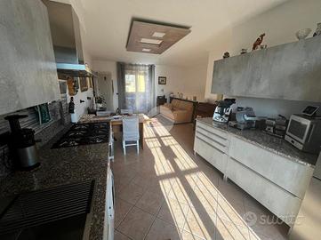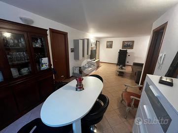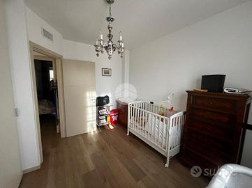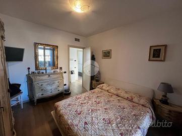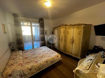 L'ingresso si apre su un ampio soggiorno con accesso diretto al grande loggiato vivibile, perfetto per momenti di relax e convivialità, la cucina a vista si affaccia sul luminoso giardino privato esposto a sud offrendo uno spazio verde esclusivo. La zona notte è composta da due camere matrimoniali che assicurano ampi spazi per il riposo ed un bagno finestrato dotato di vasca.