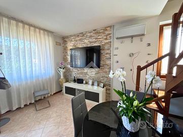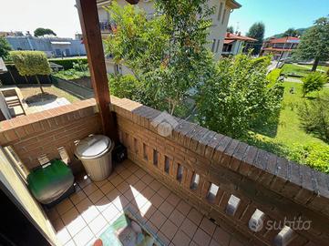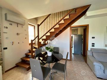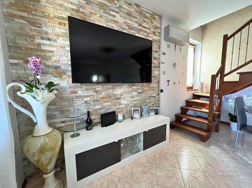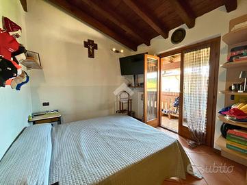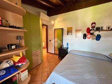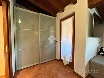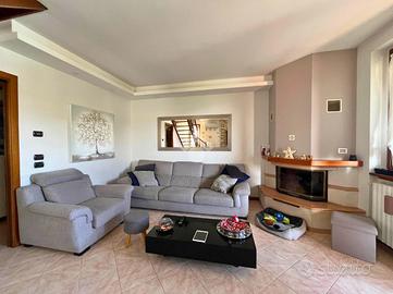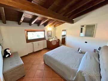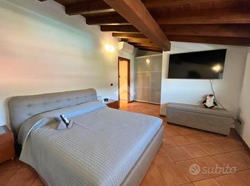 CAPRIOLO: Proponiamo in vendita spazioso trilocale su due livelli, con ingresso indipendente e giardino privato, situato in contesto tranquillo e ben servito. L'abitazione si sviluppa al primo piano, accessibile da una scala esterna che conduce a un piacevole loggiato coperto, ideale per momenti di relax. L'ingresso si apre su un ampio soggiorno, separato dalla cucina abitabile con balcone. Completano il piano un disimpegno e un bagno finestrato con doccia. Tramite una scala interna si accede al piano superiore dove troviamo una spaziosa camera matrimoniale caratterizzata da travi a vista e balcone, una seconda camera, anch'essa con travi a vista e accesso a un ampio balcone e infine un secondo bagno finestrato dotato di vasca. Tramite la scala esterna si accede all'interrato dove troviamo una comoda lavanderia, box doppio in lunghezza e un posto auto di proprietà. POSSIBILITÀ DI ACQUISTARE UN ULTERIORE BOX DOPPIO A €15.000 Soluzione ideale per chi cerca comfort, indipendenza e spazi esterni, in una casa dal carattere unico e con ampie metrature.