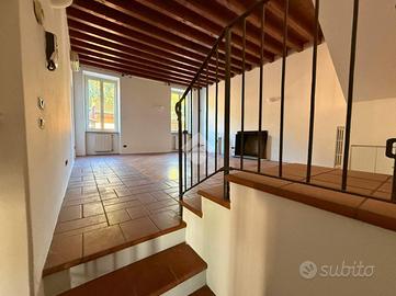 Capriolo: All'interno di una caratteristica corte con cortile comune, proponiamo in vendita un affascinante appartamento situato al primo piano, con ingresso da terrazza. L'abitazione si sviluppa su più livelli, collegati da una scala interna, e si distingue per gli ampi spazi, la luminosità e i soffitti alti. Al primo livello si trova l'ingresso che introduce in un ampio soggiorno con camino e grandi finestre che garantiscono una splendida illuminazione naturale. Da qui, alcuni gradini conducono alla cucina separata e finestrata, accanto alla quale si trovano un disimpegno e un bagno di servizio. Salendo la scala interna si accede al piano superiore, dove un secondo disimpegno divide gli ambienti: * sulla destra, una spaziosa camera matrimoniale con soppalco e bagno privato en suite; * sulla sinistra, un secondo bagno e una cameretta. La scala prosegue infine verso il soppalco superiore, con affaccio sulla camera matrimoniale, ideale come zona studio o area relax. Completano la proprietà un comodo box doppio situato all'interno della corte e spazi comuni ben curati. L'immobile si presenta luminoso e accogliente, con ambienti ariosi e ampie superfici vetrate che valorizzano la struttura e ne esaltano il fascino.