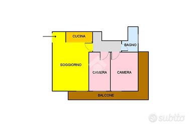 L'immobile proposto in vendita, è ubicato al 2° piano in una piccola palazzina sprovvista di ascensore e si compone dei seguenti ambienti: ingresso, soggiorno con angolo cottura e camino, camera matrimoniale, cameretta, bagno, ripostiglio ed ampio balcone perimetrale.