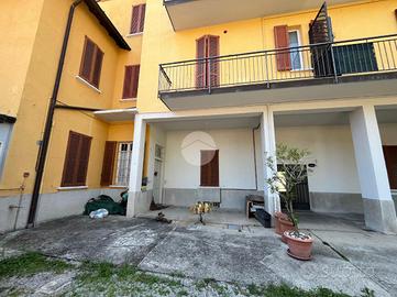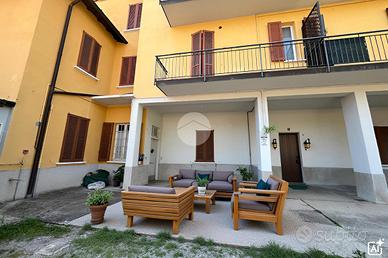 Proponiamo un trilocale di 120 mq, situato in un contesto semindipendente. L'immobile si compone di un soggiorno, una cucina abitabile con camino, una spaziosa camera matrimoniale, una cameretta, un bagno finestrato al piano terra ed un secondo bagno al piano primo, con spazi articolati e ricchi di possibilità. Un portico privato arricchisce la proprietà, offrendo uno spazio esterno da vivere e personalizzare secondo le proprie esigenze. La palazzina è ante '67, ma è stata ristrutturata negli anni. In particolare questo appartamento è stato parzialmente ristrutturato nel 2019, rappresentando un' opportunità per chi desidera personalizzare le finiture, curando ogni dettaglio a seconda delle proprie esigenze. La posizione centrale garantisce la massima comodità, infatti, tutti i principali servizi si trovano a portata di mano. Minime spese annuali rappresentano un ulteriore vantaggio economico. Grazie alla scala interna si accede a una comoda e utile cantina al piano interrato. Completa la proprietà un'autorimessa singola da conteggiare a parte.