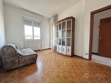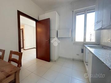 L'appartamento, di circa 95 mq, è servito da ascensore e si compone di: ingresso, ampio soggiorno con zona pranzo separata e accesso al balcone, cucina abitabile, disimpegno notte, due camere matrimoniali (una con uscita su secondo balcone) e due bagni finestrati, uno con doccia e l'altro con vasca.