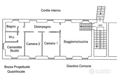 Proponiamo in vendita, all'interno di un tranquillo contesto di corte e con minime spese condominiali, un ampio trilocale di circa 100 mq, situato al primo piano e disposto su un unico livello. L'immobile si distingue per l'ottima distribuzione degli spazi interni ed offre la possibilità di essere facilmente trasformato in un quadrilocale, ricavando una terza camera da letto. La zona giorno è composta da una cucina abitabile e da un luminoso soggiorno, entrambi esposti a Sud, garantendo un'ottima illuminazione naturale durante tutta la giornata. La zona notte comprende due spaziose camere matrimoniali, anch'esse esposte a Sud, e un bagno finestrato dotato di doccia. La soluzione necessita di interventi di ristrutturazione, rappresentando un'interessante opportunità per chi desidera personalizzare gli ambienti secondo il proprio gusto e le proprie esigenze. All'interno della corte è presente un giardino comune, ideale per trascorrere piacevoli momenti all'aperto nelle giornate di sole. L'immobile è libero da subito. Completa la proprietà un'autorimessa di circa 25 mq situata all'interno della corte.