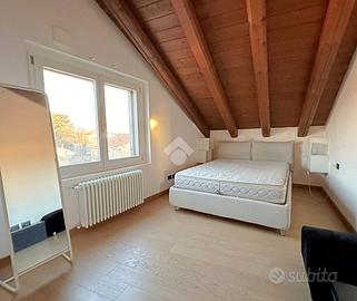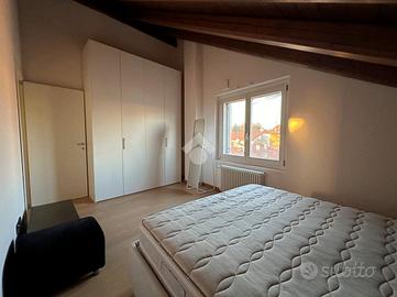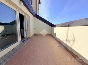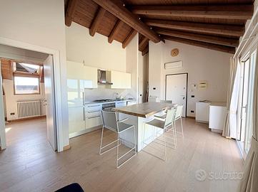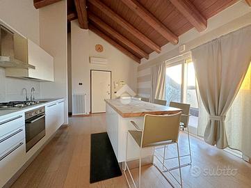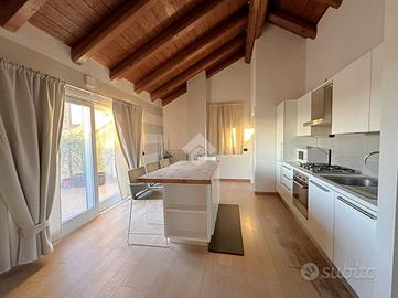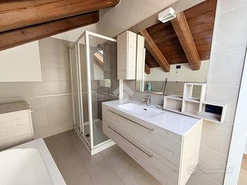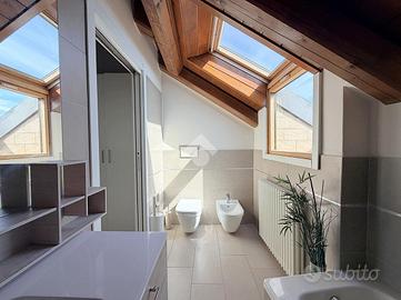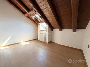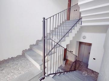Zona Centro/Clinica Zucchi, nel pieno centro storico di Carate Brianza, comodo con i principali mezzi di trasporto, parchi pubblici attrezzati, negozi e scuole, proponiamo all'interno di un affascinante contesto d'epoca risalente al 1850, completamente ristrutturato nel 2010, un elegante appartamento situato al terzo ed ultimo piano, servito da ascensore, caratterizzato da un suggestivo tetto con travi a vista che dona calore e personalità agli ambienti. L'abitazione, si apre su un accogliente soggiorno con angolo cottura, uno spazio funzionale e ben distribuito, ideale per la vita quotidiana. La zona notte comprende due camere matrimoniali, perfette per famiglie o per chi desidera ambienti spaziosi e un bagno finestrato completo, dotato sia di doccia che di vasca separate, sanitari sospesi e spazio dedicato alla lavatrice. Completa la proprietà uno splendido terrazzo di 16 mq, ideale per momenti di relax all'aria aperta. L'appartamento è rifinito con materiali moderni e dotato di ogni comfort: pavimentazione in gres porcellanato in tutti i locali, serramenti in PVC con doppi vetri e persiane in legno, zanzariere su finestre e porte finestre, oltre a porta d'ingresso blindata. Il comfort climatico è garantito dalla presenza dell'aria condizionata con pompa di calore nel soggiorno e in una camera, con predisposizione nella matrimoniale. Appartamento in classe energetica 'B', con riscaldamento centralizzato a gestione autonoma con conta-calorie e termovalvole. Tra le dotazioni troviamo inoltre la predisposizione per impianto d'allarme e un efficiente isolamento termico grazie al cappotto esterno dell'edificio. La soluzione è completata da un box doppio in lunghezza di 28 mq con annessa cantina, compreso nel prezzo, offrendo così praticità e ampi spazi accessori. L'immobile viene proposto parzialmente arredato (cucina/soggiorno, armadio in camera e bagno). Una soluzione ideale per chi cerca il fascino dell'antico unito al comfort moderno, in un contesto curato e