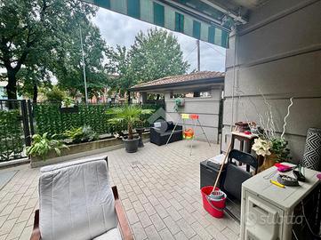 CARAVAGGIO: Proponiamo in vendita un appartamento trilocale con servizi e box, situato al piano terra di una palazzina edificata nel 2006, in contesto tranquillo e ben curato. L'ingresso si apre su un luminoso soggiorno con cucina a vista, ideale per la vita quotidiana e per ricevere ospiti. Dal disimpegno centrale si accede alla zona notte, composta da una cameretta, un bagno finestrato dotato di spaziosa doccia doppia e da una confortevole camera matrimoniale. Sia dal soggiorno che dalla cameretta si accede, tramite porta finestra, a un'area esterna privata completamente piastrellata, perfetta per momenti di relax all'aperto o per pranzi e cene in compagnia. L'appartamento è dotato di infissi in legno con doppio vetro, zanzariere, tende da sole, inferriate e videocitofono. Completano la proprietà un comodo box auto situato al piano interrato. Questa soluzione rappresenta l'ideale per chi è alla ricerca di un piano terra con spazi esterni privati, senza rinunciare al comfort e alla funzionalità di un'abitazione moderna.