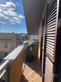 La palazzina in cui è ubicata la mansarda trova collocazione in una zona residenziale nei pressi delle scuole elementari.Favorito dalla doppia esposizione, l'appartamento è posizionato al secondo ed ultimo piano servito da ascensore. Elegantemente rifinito con travi in legno a vista sbiancate che contribuiscono a migliorare il suo aspetto estetico, la soluzione è contraddistinta dalla notevole altezza che caratterizza i suoi soffitti. La zona giorno è un ambiente open space con cucina a vista ben organizzato servito da balcone Gli ambienti della zona notte sono preannunciati dal corridoio. Entrambe le camere da letto sono doppie e sono servite da un secondo balcone. Il bagno, anch'esso di buona metratura, ospita i sanitario, il box doccia e l'attacco per la lavatrice. L'ampio box di circa 50 mq e la cantina sono inclusi e sono posti a piano seminterrato. Le spese condominiali includono la fornitura dell'acqua. Caldaia a condensazione, aria condizionata e videocitofono.