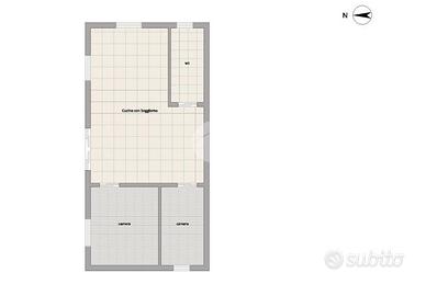 L'immobile si sviluppa interamente su un unico livello, garantendo praticità e massima fruibilità degli ambienti. L'ingresso si apre su una luminosa cucina-soggiorno, uno spazio accogliente e funzionale perfetto sia per la vita quotidiana sia per trascorrere serate in compagnia. La zona notte è composta da una camera da letto e una cameretta, ben distribuite e adatte a soddisfare le esigenze di famiglie o coppie che desiderano una stanza aggiuntiva da utilizzare come camera ospiti o studio. Completa la proprietà un bagno in buone condizioni, dotato di tutti i comfort essenziali.